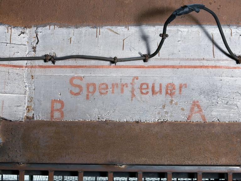 Au-dessus de l’embrasure, on peut lire : "Sperrfeuer / B [et] A", barrage B et A ;