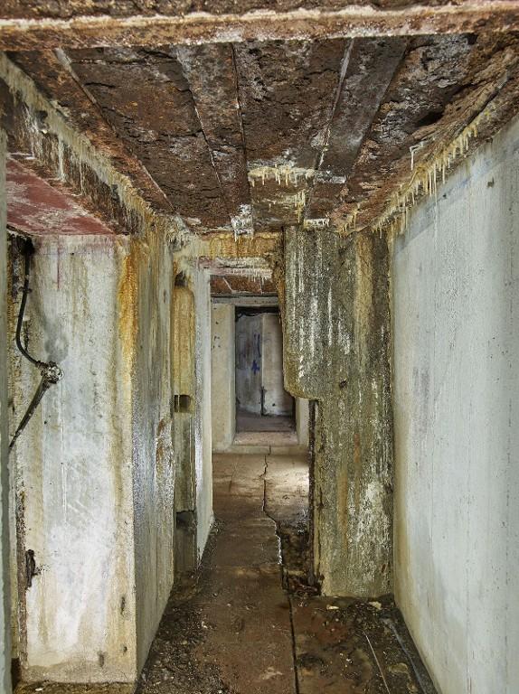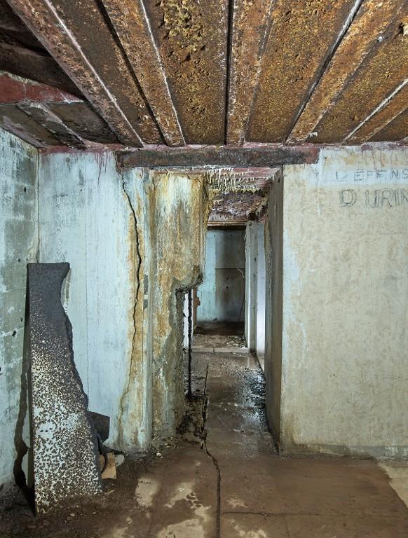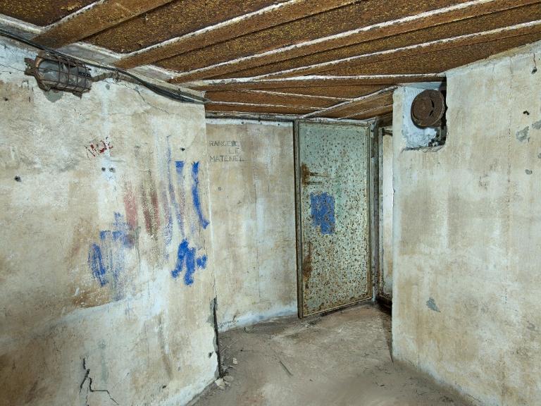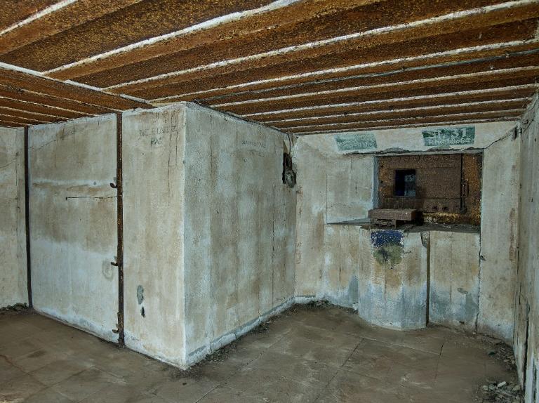 L’équipage de cette casemate pour trois mitrailleuses était vraisemblablement de neuf soldats soit, trois soldats par mitrailleuse, l’un au maniement de l’arme, les deux autres à l’approvisionnement en munition. Ils subsistent les fixations pour six couchettes tubulaires.