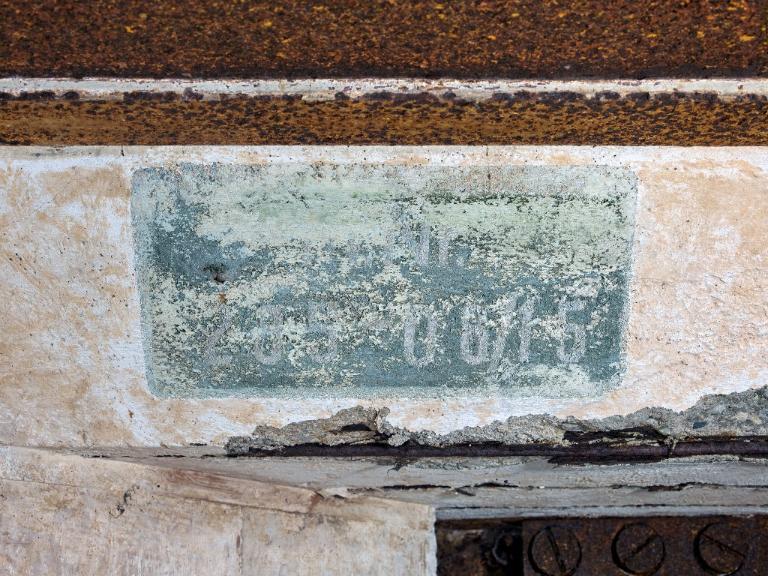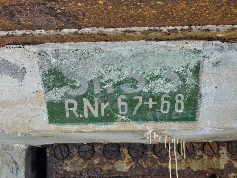 Chambre de combat sud-ouest : un cartouche, "St. 33 [inscription difficilement lisible]; R. Nr. 67+68".