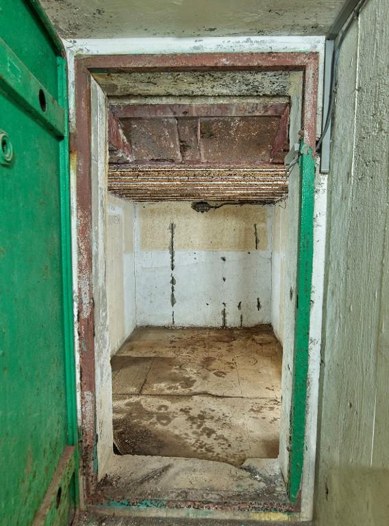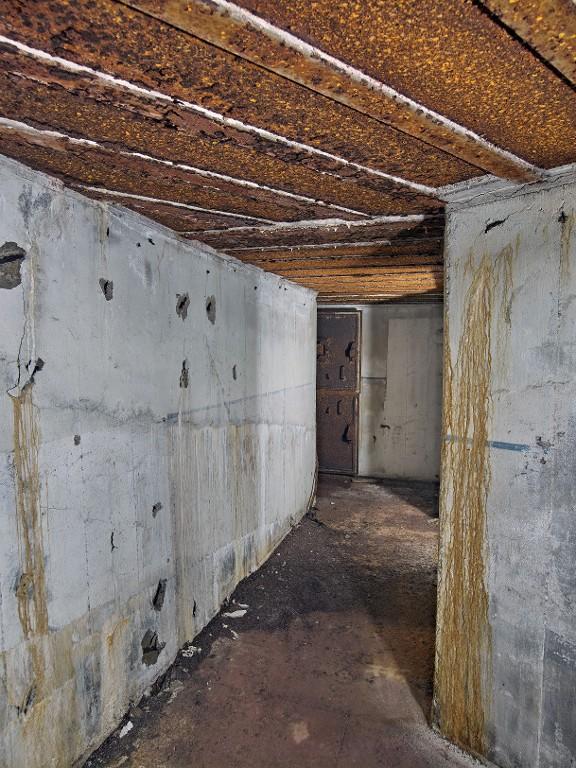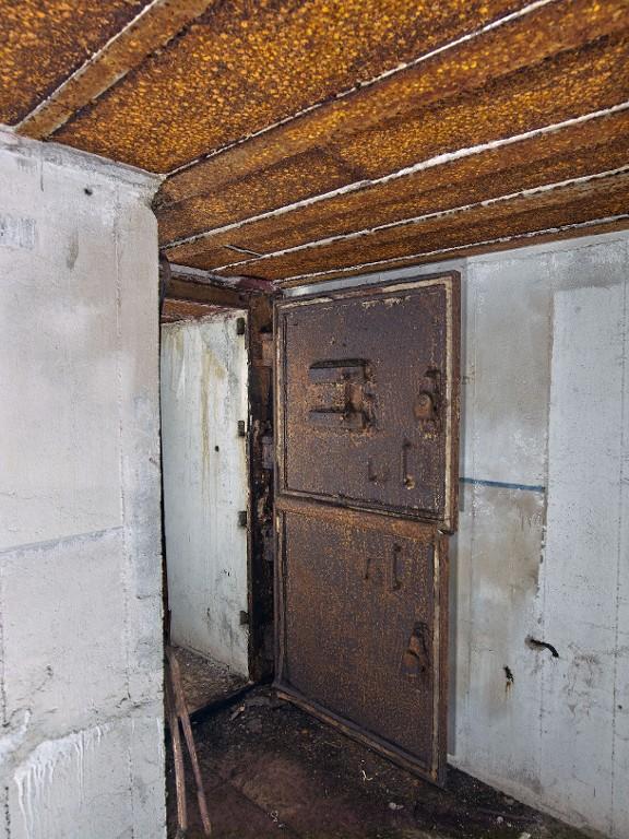 Trois portes, dont deux blindées à deux vantaux (vraisemblablement de type 434P01) pour les chambres de combat nord-ouest et sud-ouest (la troisième, légère et étanche semble être de type 723P3), isolent le vestibule des trois chambres de combat. Chaque chambre de combat est reliée au système de ventilation - avec ou sans filtration contre les gaz selon la situation - avec une bouche de soufflage à vis réglable en métal dotée d'une vanne d'arrêt et une bouche de surpression à clapet à contrepoids en aluminium (modèle 4ML01 de marque Dräger, diamètre 100 mm, à quatre boulons) située près de l’embrasure.