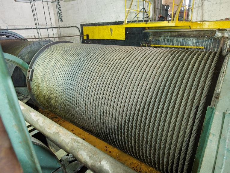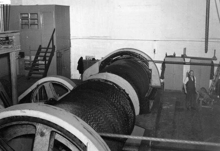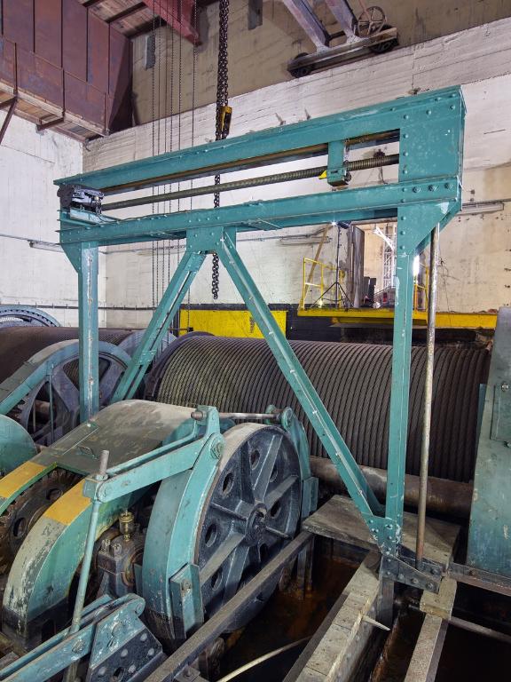 Viennent ensuite les deux roues (2736 mm, 72 dents) de l’arbre principal relié aux deux tambours de 2 m de diamètre sur lesquels sont enroulés les câbles du chariot du slipway. Les câbles qui mesurent 52 mm de diamètre ont une longueur de 460 m et de 468 m (la longueur diffère légèrement à cause du parcours du câble). Les tambours sont dotés d’une gorge ; chaque tour permet d’enrouler 6,28 m de longueur de câble.