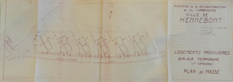 • S. Kleiner, Plan Logements provisoires semi-dur temporaire (1ère catégorie) Plan de Masse, éch. 1/5000, Ministère de la Reconstruction et de l'Urbanisme, Hennebont, novembre 1945