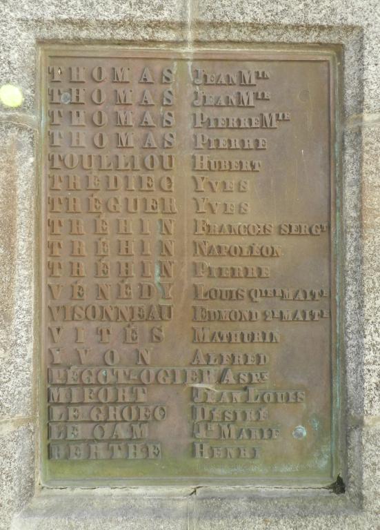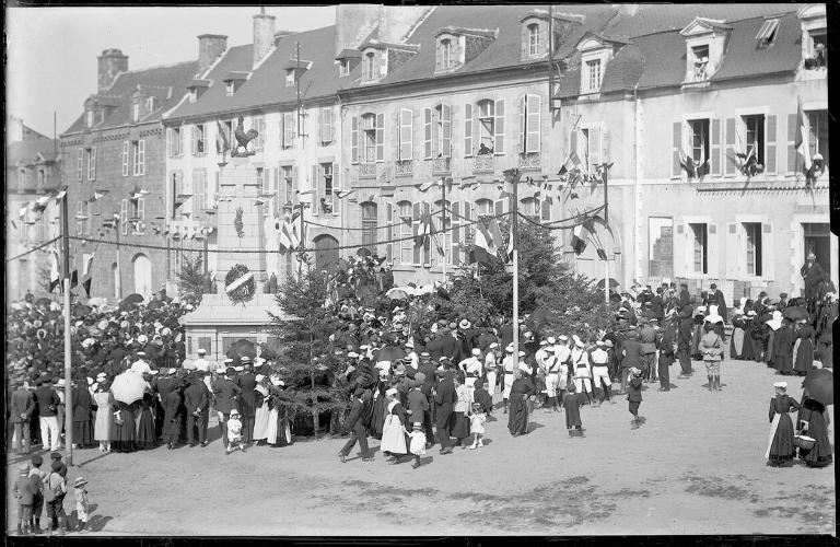 L'Inauguration a lieu le 4 septembre 1921. Elle s'ouvre par une bénédiction religieuse et la pose d'un crucifix. La journée se poursuit dans ambiance de liesse populaire au cours de laquelle sont donnés un banquet, un concert, une projection cinématographique et un bal. Parmi les 340 noms inscrits, on notera celui du peintre hennebontais Jean-Bertrand Pegot-Ogier mort au front en 1915. Tout en restant sur la place Foch, devant l'hôtel de ville, il a été déplacé de l'autre côté de la place vers l'Est.