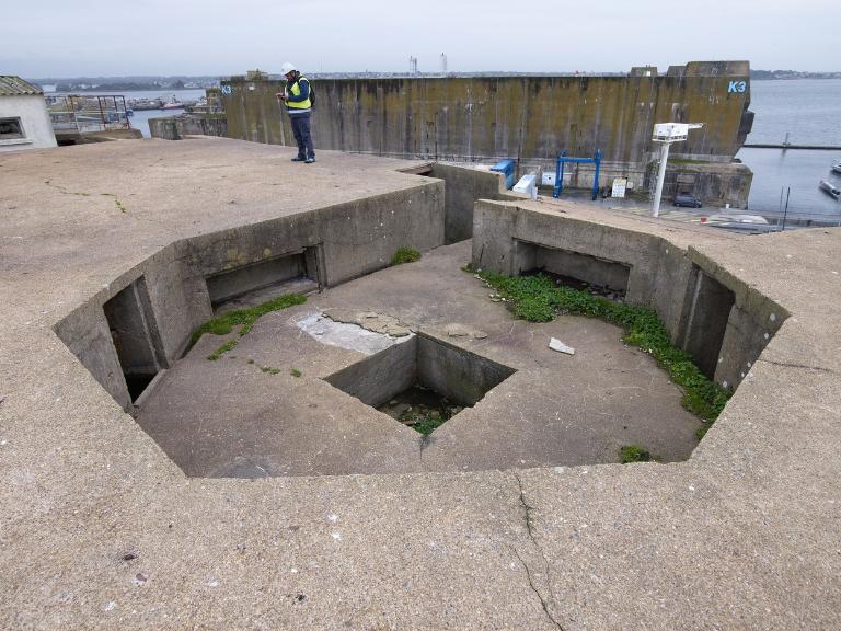 Sur la dalle de couverture sont aménagées deux cuves pour canon antiaérien. De plan heptagonal, chaque cuve dispose de niches à munition et de petits abris pour les servants du canon. Au sommet de l’escalier qui mène aux cuves à canon se trouve également un créneau de tir orienté vers l’entrée du slipway.