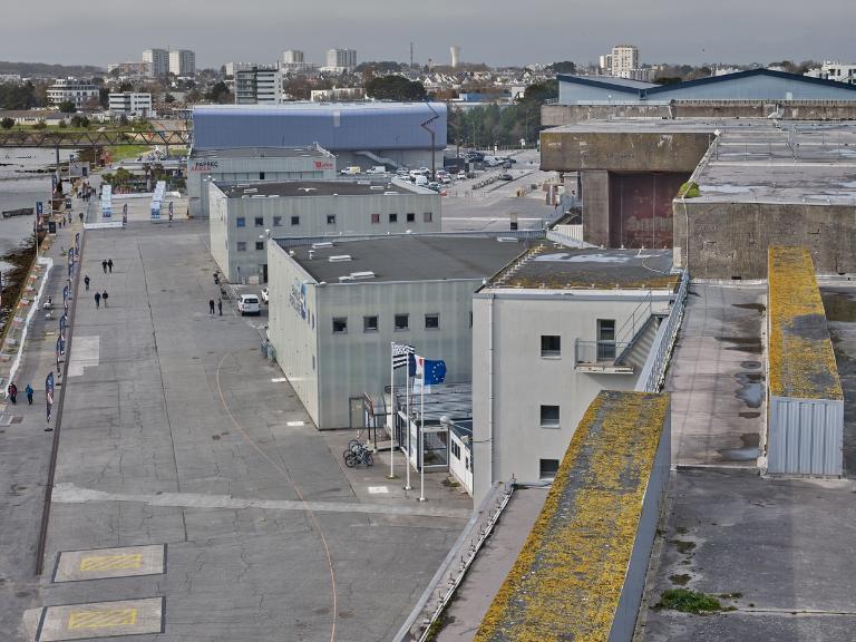 Implanté sur la dalle de couverture du bunker KI du côté du Ter (à l’ouest) et au-dessus de l’entrée du slipway, ce bunker de plan rectangulaire (24 m x 10 m) et légèrement pyramidal sur sa partie haute du fait de ses angles droits supérieurs coupés, est construit en béton armé. Dalle de couverture et murs périphériques mesurent 2 mètres d’épaisseur pour résister à un bombardement aérien, maritime ou terrestre ce qui le classe en norme de protection B (Baustärke B). Il est également étanche aux attaques au gaz.