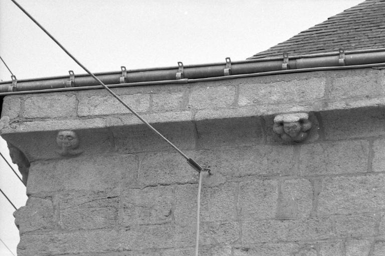 Animaux et têtes humaines sur la corniche du mur gouttereau ainsi que sur la lucarne.
