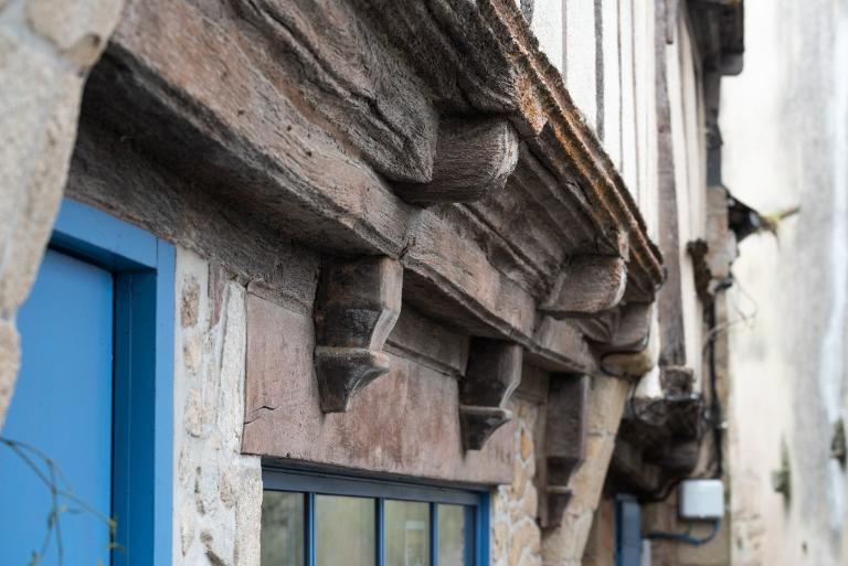 Maison à pignon sur rue dont le rez-de-chaussée est entièrement remanié. Les consoles récentes, placées sous les abouts de solive, indiquent l'emplacement des anciens poteaux en bois. La maçonnerie est postérieure ; en 1978 une porte de garage occupait l'emplacement de l'actuelle baie.