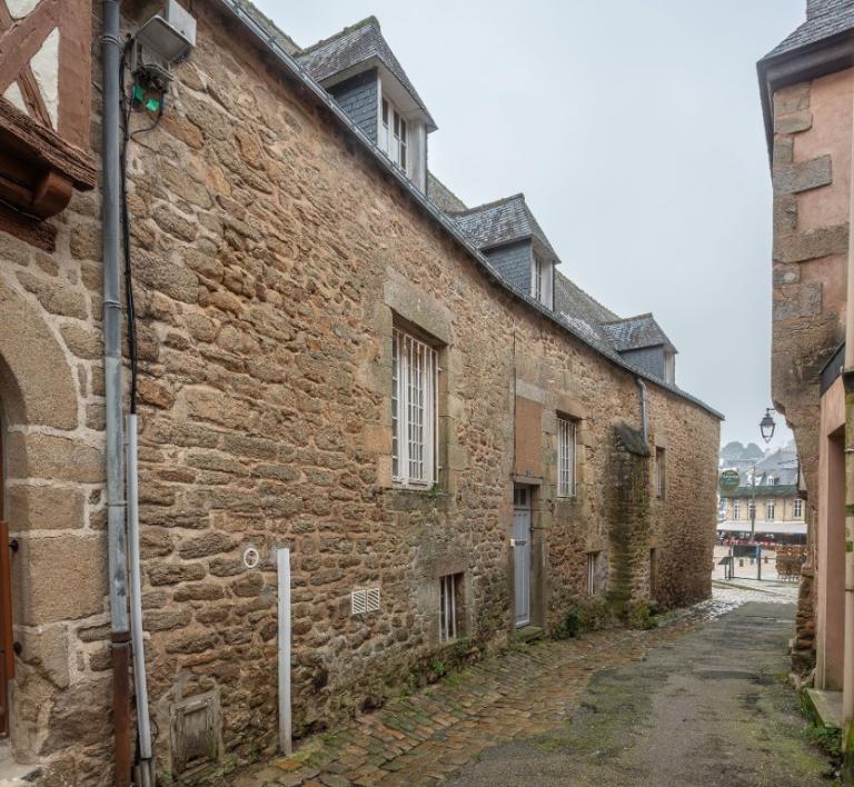 Le mur gouttereau rue du Petit Port est percé de deux fenêtres avant un contrefort et l’extension 17e siècle du bâtiment. Une ancienne fenêtre au-dessus de la porte actuelle au n°2 rue du Petit Port porte en effet la date de 1695 sur le linteau. Des aménagements du 17e siècle sont également visibles en intérieur : un escalier à balustre et une cheminée. Le placard en plein cintre avec pierre d’évier, situé au rez-de-chaussée, fait lui partie des aménagements de confort d’origine.