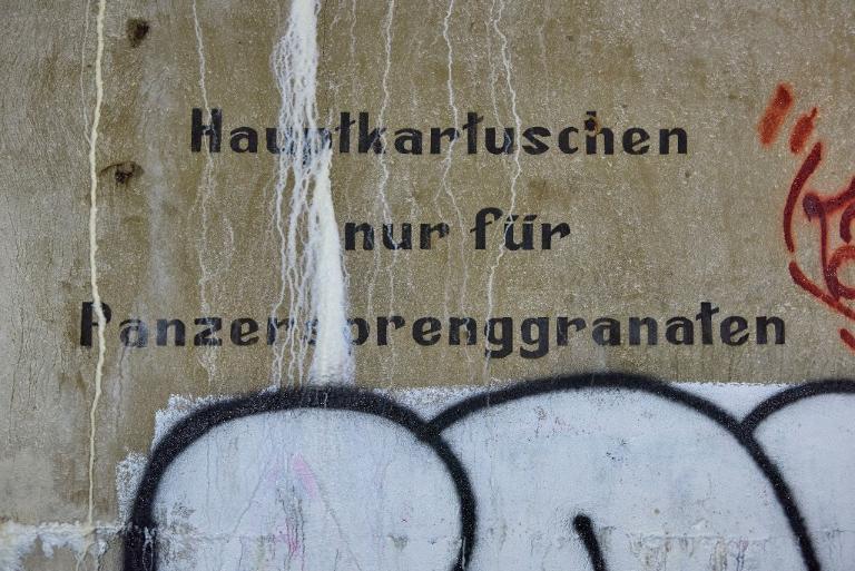 Nombreux marquages et instructions de tir. Peintures de propagande nazie.