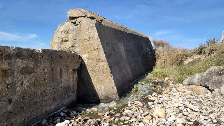Au nord de la grève est implanté un bunker-casemate de type 505 pour canon antichar. Privé de ses plaques de blindage et de ses équipements, ce bunker conserve des peintures murales : couleurs ocre jaune, blanche et ocre rouge et des inscriptions : "St. [flèche]" signalant le couloir d’accès, inscription "Bum" au-dessus de la porte). L’inscription abrégée "St." pour "Standig" indiquait aux soldats que la construction était permanente, c’est-à-dire résistante à un bombardement et étanche en cas d’attaque aux gaz de combats.