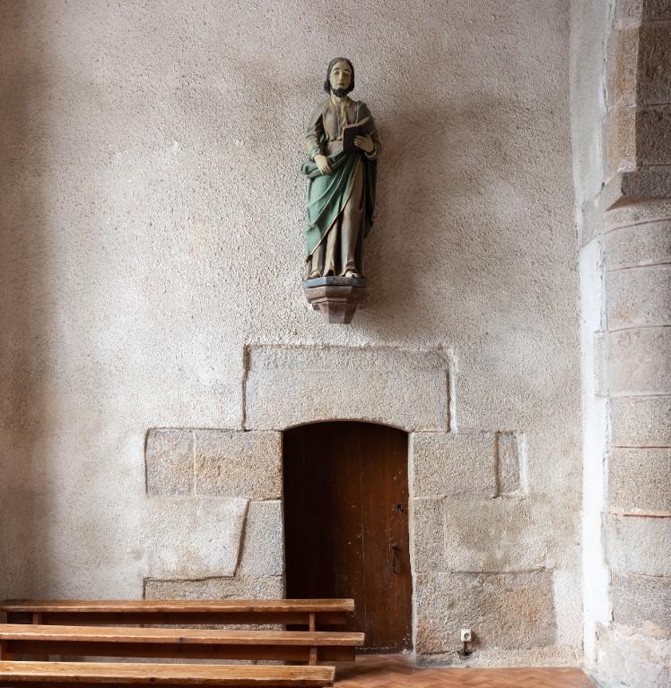 Cependant, l'église abrite aussi de nombreux objets estimés au 16-17e siècle : des fonts baptismaux, un christ en croix en bois, une statue d'applique en bois polychrome d'un apôtre, un bas relief de la crucifixion (situé à l'origine sur le mur sud de la sacristie) et un bénitier en granite.