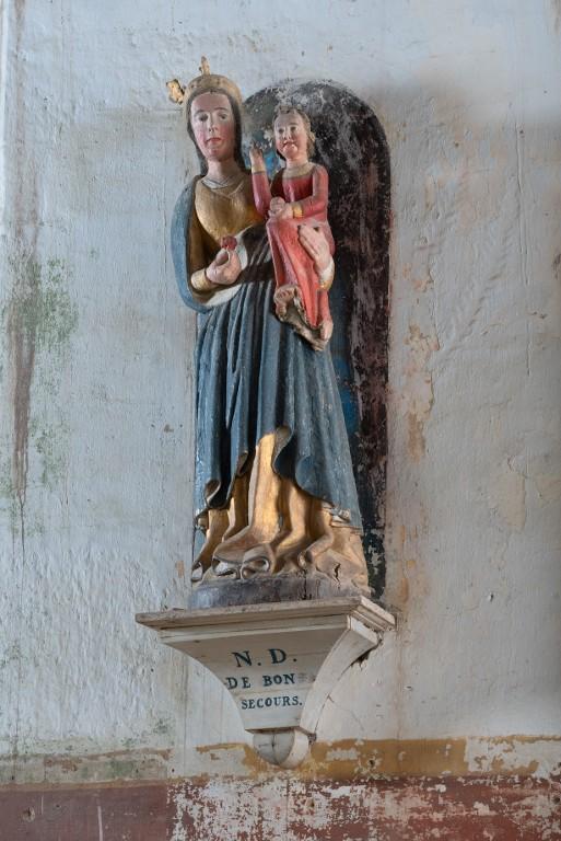 Le chœur abrite un remarquable ensemble de statues d’applique, polychrome et monoxyle : saint Antoine (18e siècle), saint Louis (17e siècle), saint Lubin (17e siècle), un évêque (16e siècle), Vierge à l’Enfant (16e siècle) et saint Maurice (16e siècle).