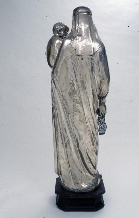 Il s'agit d'une grande statue de Vierge à l'Enfant debout et couronnée.