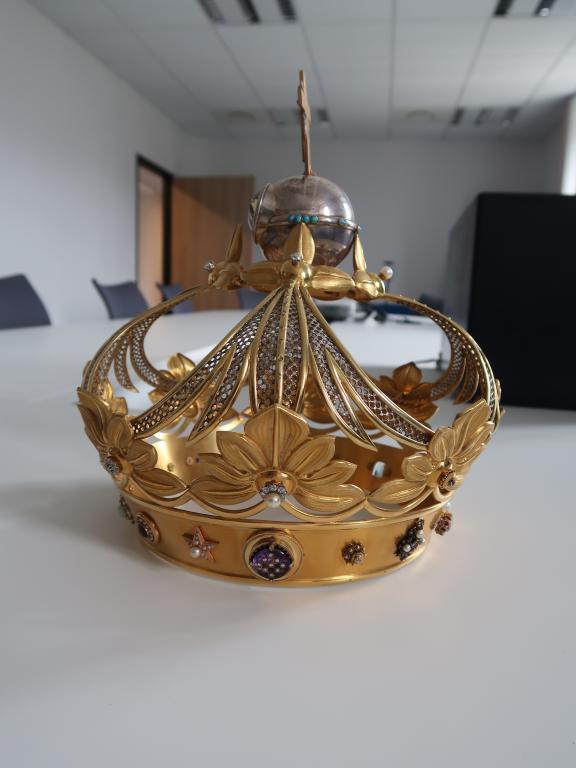 Ces couronnes sont réalisées pour le couronnement solennel de la statue de Notre-Dame de Délivrance, en 1934, par l'orfèvre briochin René Desury (1900-1963).