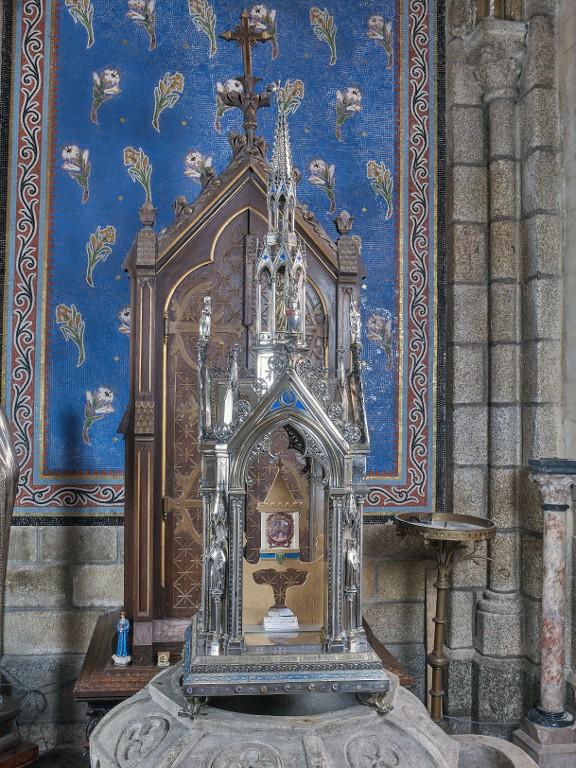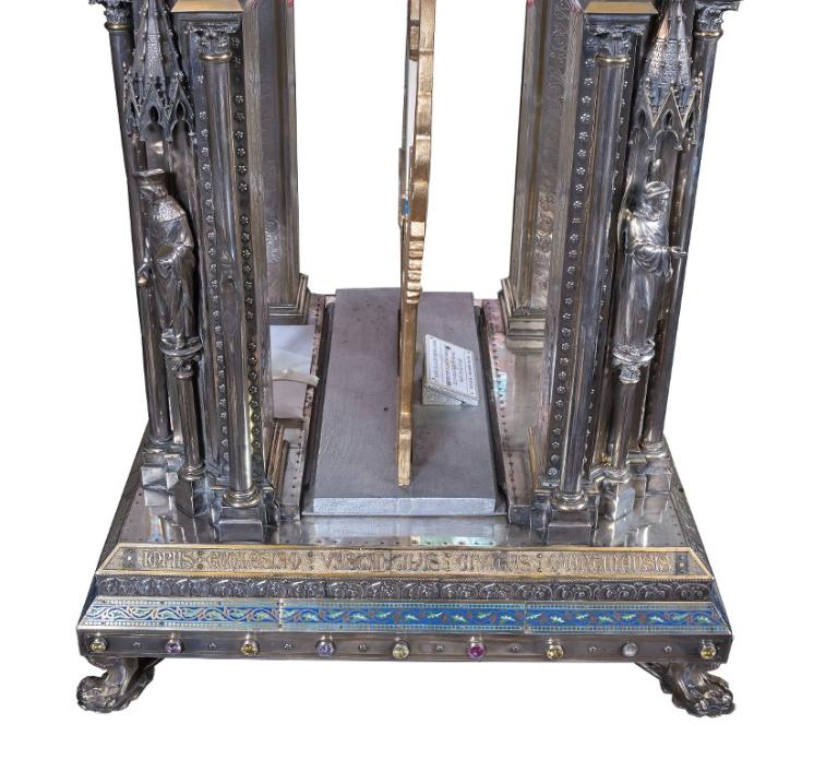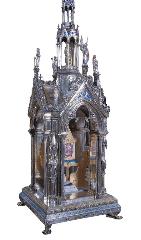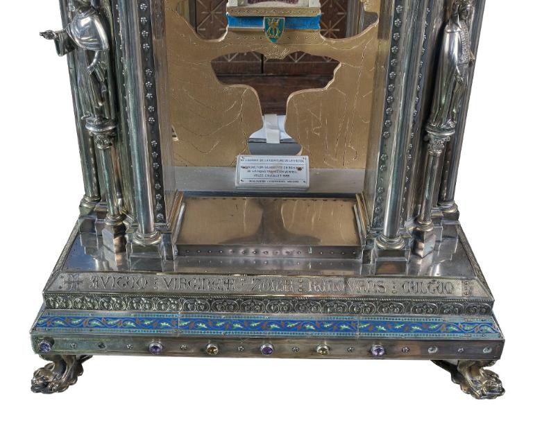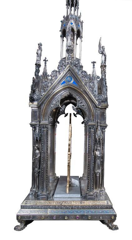 Le grand reliquaire est conservé dans la chapelle des fonts baptismaux, à l'intérieur d'une armoire spécialement conçue pour l'accueillir. Dans cette même chapelle se trouve la statue en argent de Notre-Dame de Délivrance (1875), qui, habitée du même esprit archéologique, est peut-être attribuable au même orfèvre.