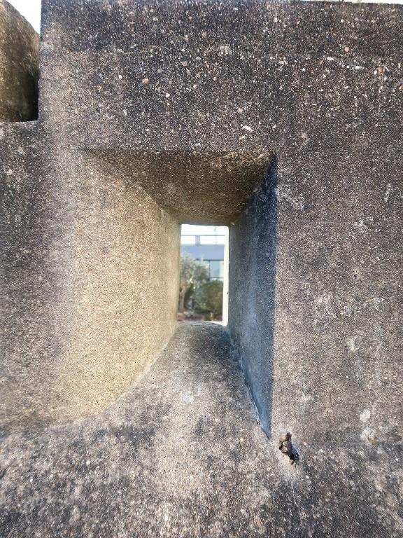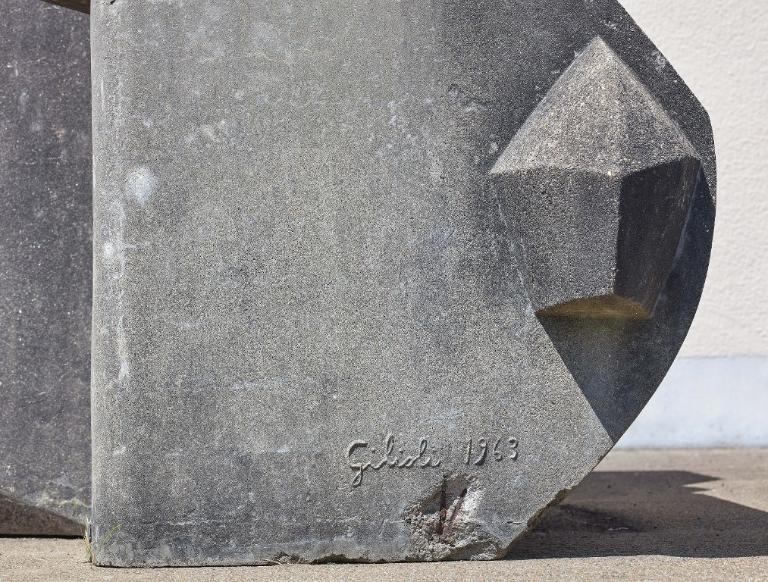 Il est à noter que la sculpture, prévue en granite noir, a été réalisée en ciment. L'artiste l'a datée de 1963.