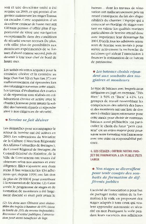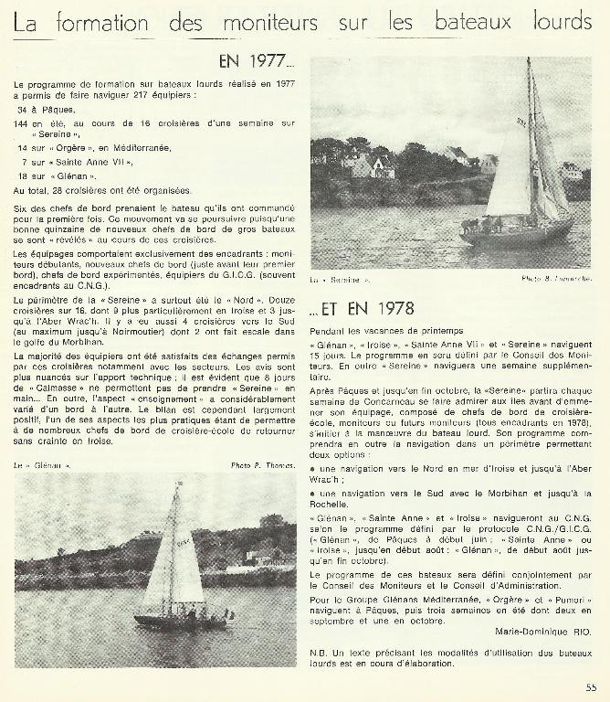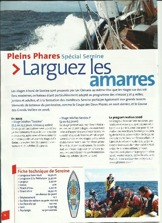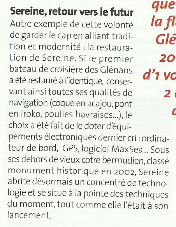 Sereine, la vieille dame du Centre des Glénans, Pierre-Henri MARTIN, Giuseppe TOMATIS et Luc FOURICHON, Chasse-marée, N° 115, 1988, p. 30-43.