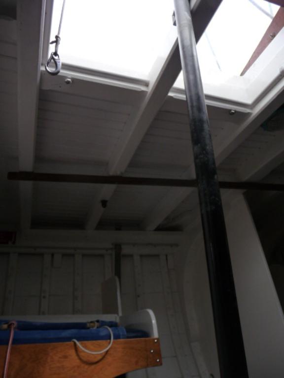 Le mât en spruce de 14 m 50, avec deux hauteurs de barres de flèche, a été fabriqué par une menuiserie de Castelnaudary. Le renvoi des manœuvres se fait au pied de mât. Il existe deux bastaques et tangons de spi avec cloches de fixation sur le mât.