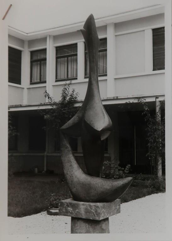 Concernant la sculpture : "Cet emplacement a été choisi pour sa position centrale entre l'Externat et l'Internat, de telle sorte que les élèves, les professeurs et les visiteurs puissent en profiter le plus fréquemment possible étant donné la fréquence de passages à proximité de cet endroit".