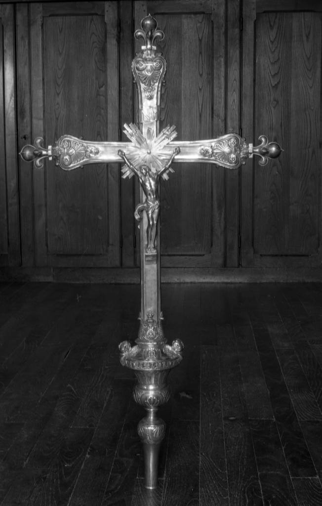 Croix de l'orfèvre parisien Jean Loque, datée par poinçon entre 1809 et 1819 avec ajouts de fleurs de lys plus anciennes (17e ou 18e siècle) au bout des branches.