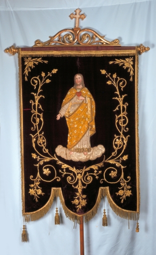 Au moment de l'enquête (2025), l'objet est rangé dans une armoire à bannière en bois placée dans la nef et protégée par un rideau. Elle est encore portée en procession pour l'Assomption (15 août) vers la grotte de Fréval située à 2,5 km de l'église.