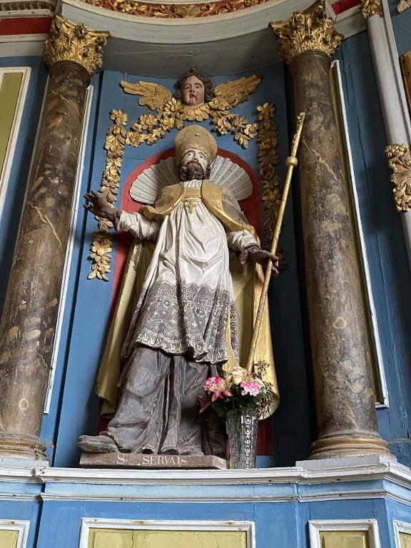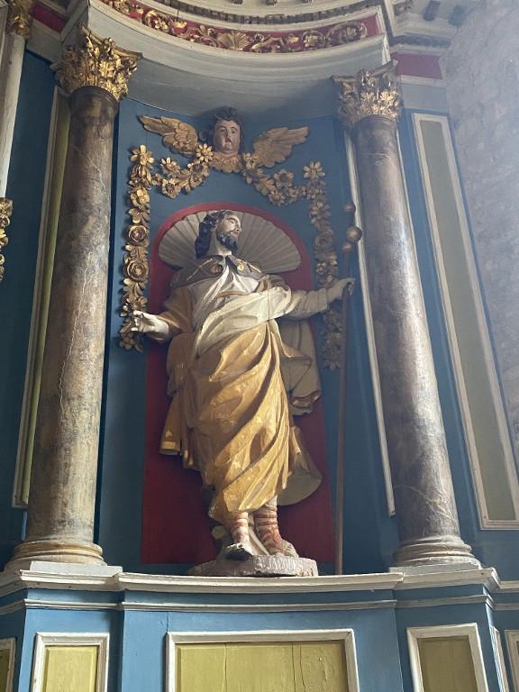 Autel déplacé au centre du chœur ; tabernacle déposé ; partie inférieure du retable probablement refaite.