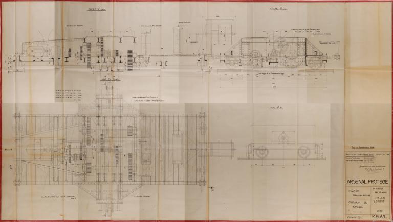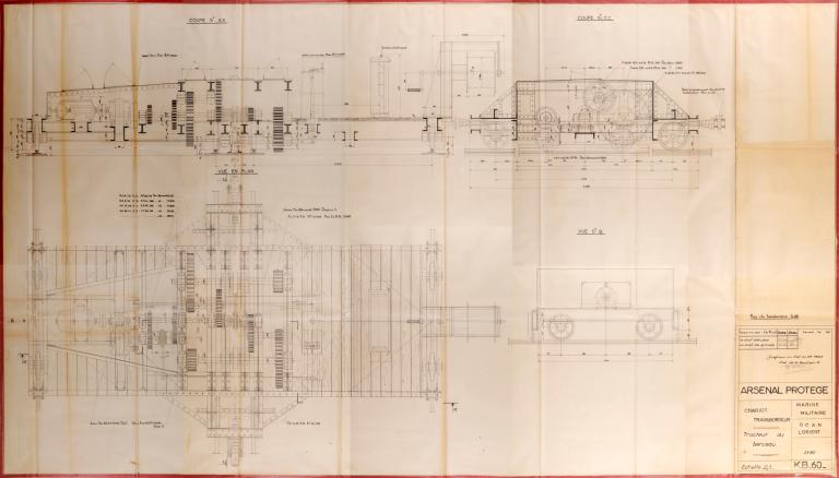 Chariot tracteur-pousseur du chariot transbordeur pour sous-marin, entre les bunkers K1 et K2 (Lorient),