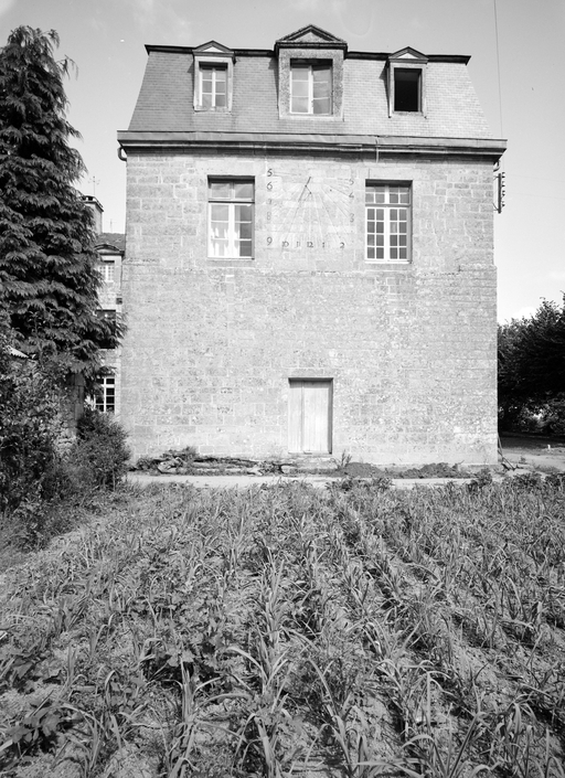 Corps de bâtiment D, pignon sud avec le cadran solaire pris de face (1965)Immatriculation