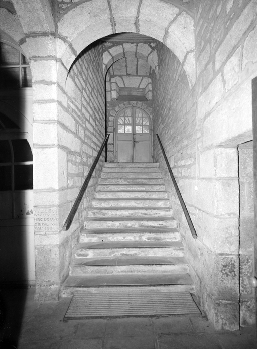 Corps de bâtiment C, détail de l'arrière voussure de porte au 1er étage et 2e volée droite (1965)Immatriculation
