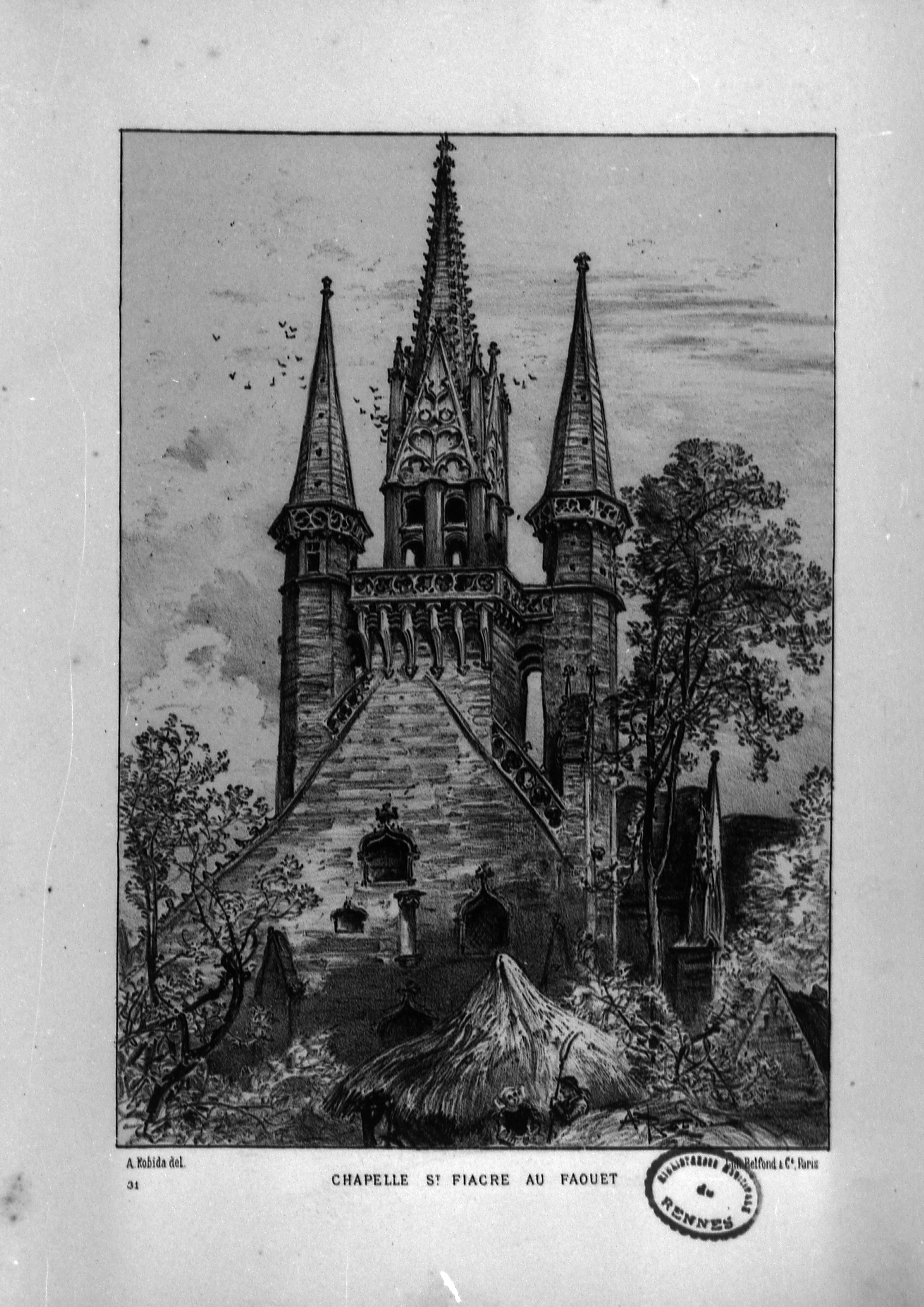 Façade ouest, vue générale. Gravure d'Albert Robida. Fin 19e.Immatriculation