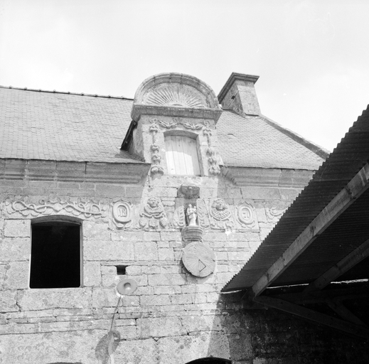 Détail des ouvertures et de la décoration du 2è niveau de la façade sud.Immatriculation