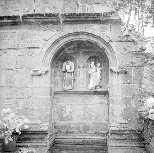 Fontaine principale, arcade de droite, statues de sainte Noyale et de la Vierge à l'EnfantImmatriculation