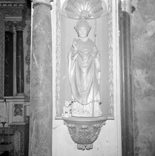 Statue de saint Nicolas (ou saint Cornély ?), dans le retable du bras sud du transept.Immatriculation