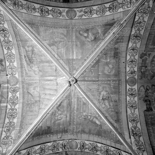 Voûte lambrissée peinte, croisée du transept, vue d'ensemble.Immatriculation