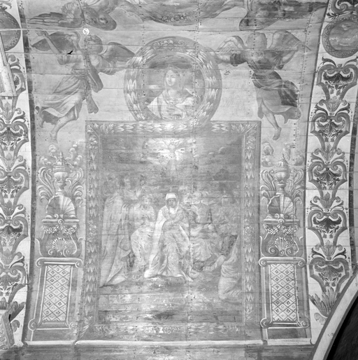 Voûte lambrissée peinte, choeur, panneau au sud, descente de l'esprit saint.Immatriculation