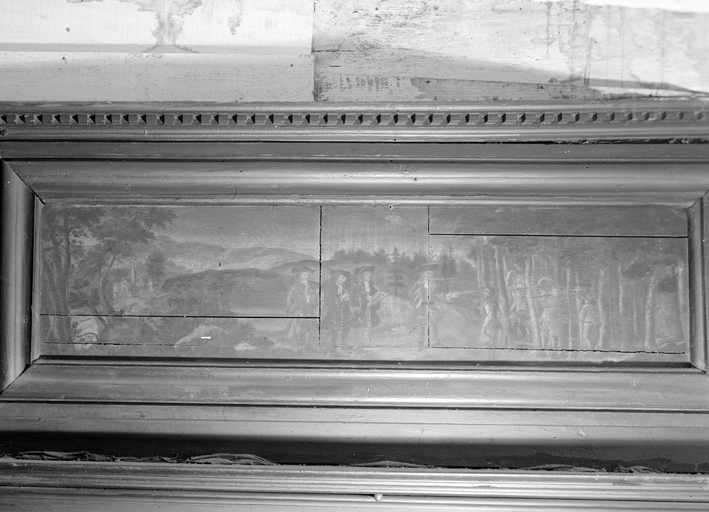 Maison B, cheminée de l'étage, détail du panneau supérieur.Immatriculation