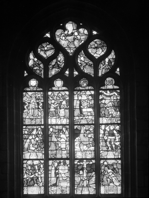 Vitrail du mur nord du bras nord du transept.Immatriculation
