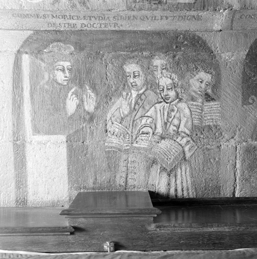 Peintures de la vie de saint Maurice sur l'autel du pilier sud-ouest de la croisée du transept, panneau central.Immatriculation