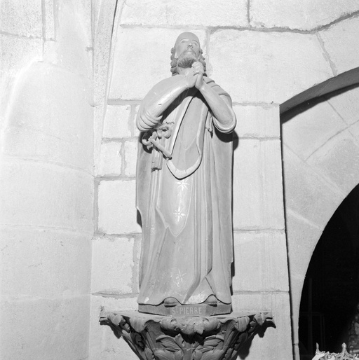 Statue de saint Pierre à l'entrée des fonts baptismaux, bas-côté nord.Immatriculation