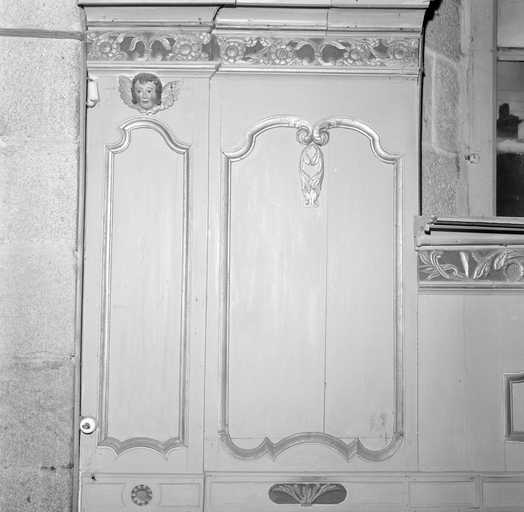 Lambris du choeur, détail des panneaux à l'extrémité du mur nord.Immatriculation