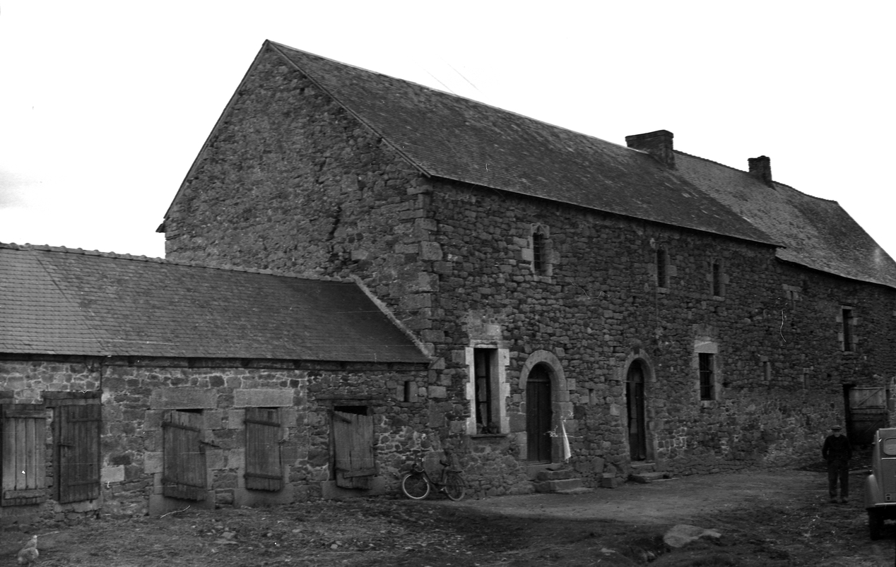 Vue ancienne du manoir de la Porte encadré par la porcherie et l’étableImmatriculation
