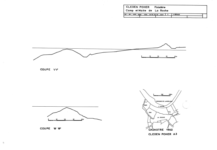 Coupes de la motte et de la basse-cour et extrait du cadastre de 1962Immatriculation