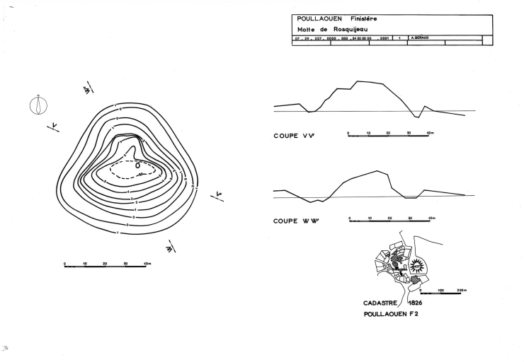 Plan avec courbes de niveau, coupes et extrait du cadastre de 1826Immatriculation