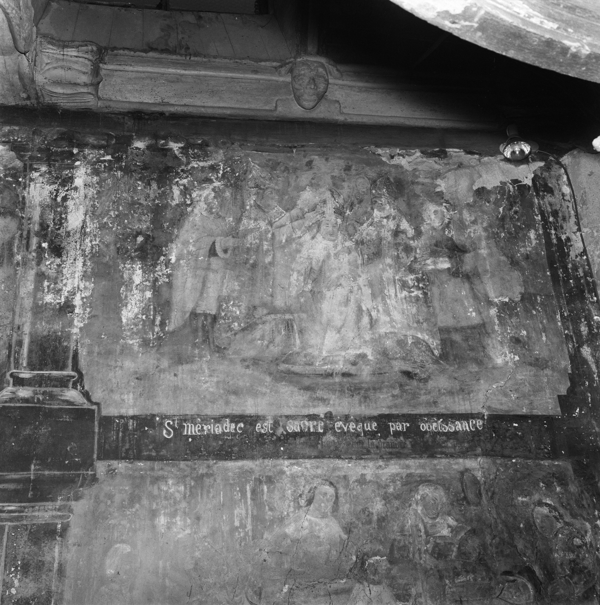 Peintures du choeur : panneau 7, mur sud niveau supérieur ouest, saint-Mériadec, sacré évêqueImmatriculation