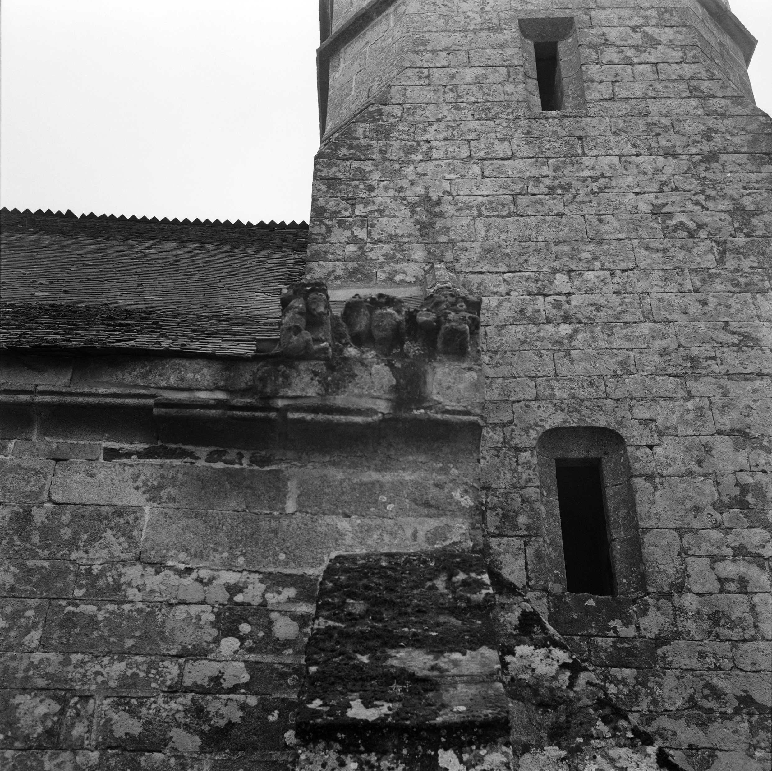 Figures sculptées sur la corniche à l'extrémité ouest du mur nord de la nefImmatriculation