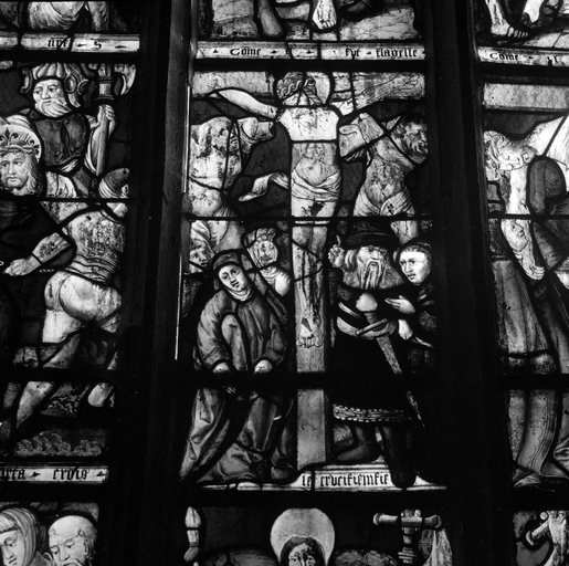 Vitrail de la Passion, dans le bras sud du transept : panneau 5, la CrucifixionImmatriculation