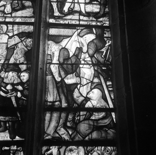 Vitrail de la Passion, dans le bras sud du transept : panneau 6, la Descente de croixImmatriculation