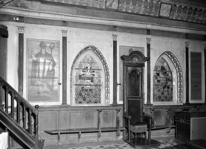 Choeur : vue d'ensemble des stalles et panneaux peints du mur nordImmatriculation