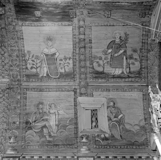 Lambris peint de la voûte, choeur, au nord saint-Mathieu, saint-Jean, un roi et une sainteImmatriculation