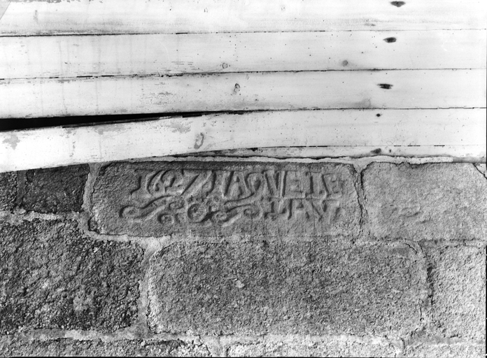Porche sud, intérieur : inscription du mur estImmatriculation